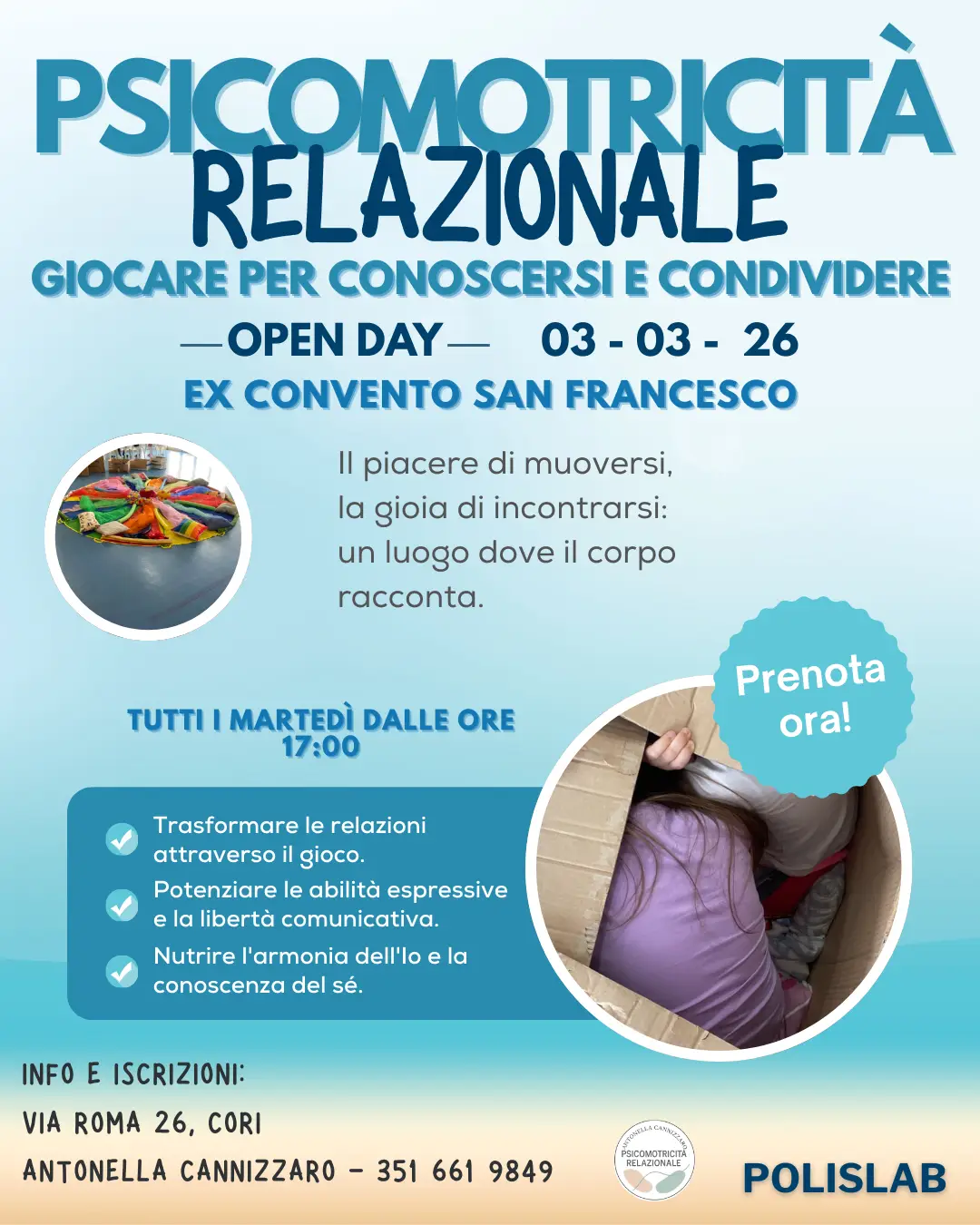 Polislab presenta il nuovo percorso di Psicomotricità Relazionale a Cori.